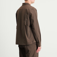 The Pas Normal Studios off-race tech overshirt is a versatile layering piece built for movement and adaptability. Made from breathable, four-way stretch fabric with a C0 DWR coating, it offers moderate wind and water resistance, ideal for light rain and breezy rides. Its boxy silhouette features bike-accessible pockets, curved sleeves, pleated back, and a longer rear hem for enhanced comfort in motion. Finished with snap buttons and reflective logos, it provides light insulation and excellent ventilation. - 89% Nylon, 11% Spandex - C0 DWR Coated - 4-Way Stretch - Snap Button Closure - Front & Back Pockets - Back Pleats - Reflective Branding - Style Code: MSH2043AO-505