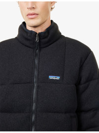 PRODUCT DETAILS - Patagonia knitted-down jacket - 100% nylon; filling 75% down, 25% waterfowl feather; lining 100% polyester - Exposed zip fastening at front - Regular fit, high-neck, long sleeves, brand patch and two welt pockets at front, all-over knitted, all-over quilted and padded, fully lined - Machine wash mild - Size medium: length 25in / 64cm, chest 42in / 107cm - Model is 6ft 2in/1.88m and wears a size medium - Midweight, slight stretch Ref: R04504480