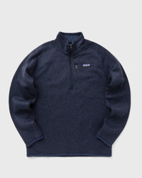 Made from 100% recycled polyester, the warm Patagonia Better Sweater 1/4-Zip combines the look of a knit sweater with the easy care of Better Sweater fleece. The fabric is dyed using an environmentally friendly process that reduces the amount of water, energy and chemicals needed compared to conventional methods. - Quarter-length zipper up through the stand collar with a piped slider cover - Raglan sleeves for mobility and comfort under a pack - Vertical zippered left chest pocket for essentials - Soft, shape-retaining and abrasion-resistant trims on sleeves and hem - Construction with flatlock seams that won't chafe or rub - Made in a Fair Trade Certified facility Article number: 25523-NENA Gender: men Color: NEW NAVY Material: 100% Polyester