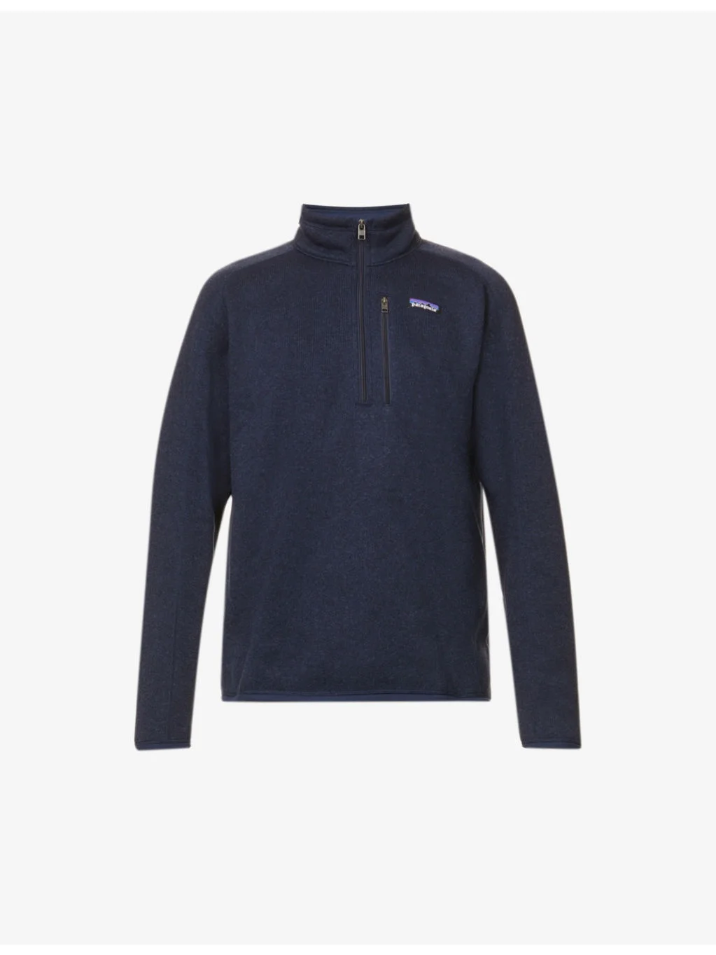 PRODUCT DETAILS - Patagonia recycled-polyester sweatshirt - 100% recycled polyester - Exposed zip fastening at front - Relaxed fit, high neck, raglan long sleeves, elasticated at cuffs, brand patch and zipped pocket at chest, exposed tonal stitching, all over knitted, contrast piping, elasticated hem - Machine wash mild - Model is 6ft 2in/1.88m and wears a size medium - Lightweight, stretchy Ref: R03898316