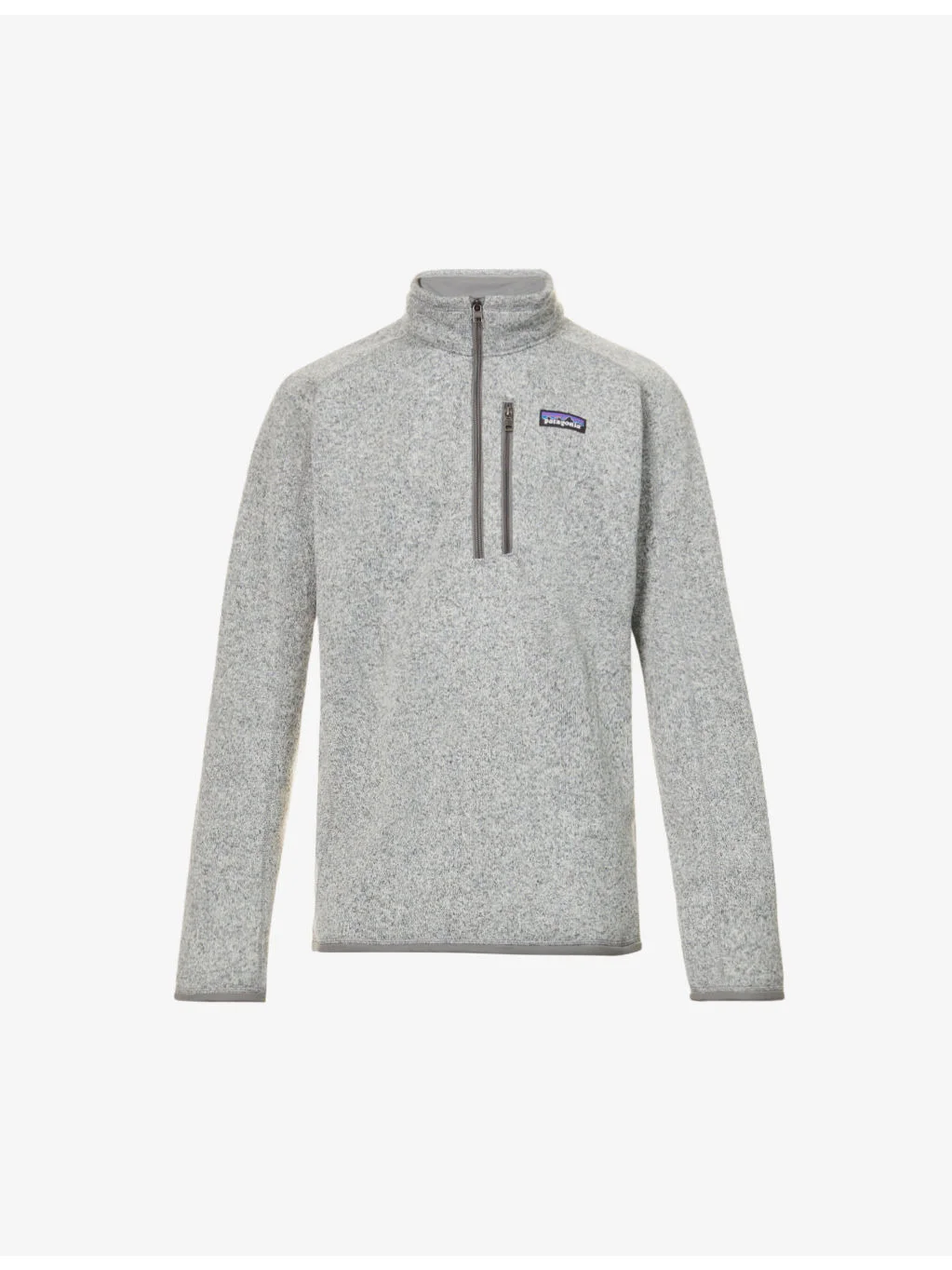 PRODUCT DETAILS - Patagonia recycled-polyester jumper - 100% recycled polyester - Exposed zip fastening at front - High neck, long sleeves, rounded cuffs, relaxed-fit, one zip pocket at front, brand patch at front - Machine wash mild - Size UK medium: length 28in/71cm, chest 42in/107cm - Model is 6ft 2in/1.88m and wears a size medium - Midweight, slight stretch Ref: R03804757