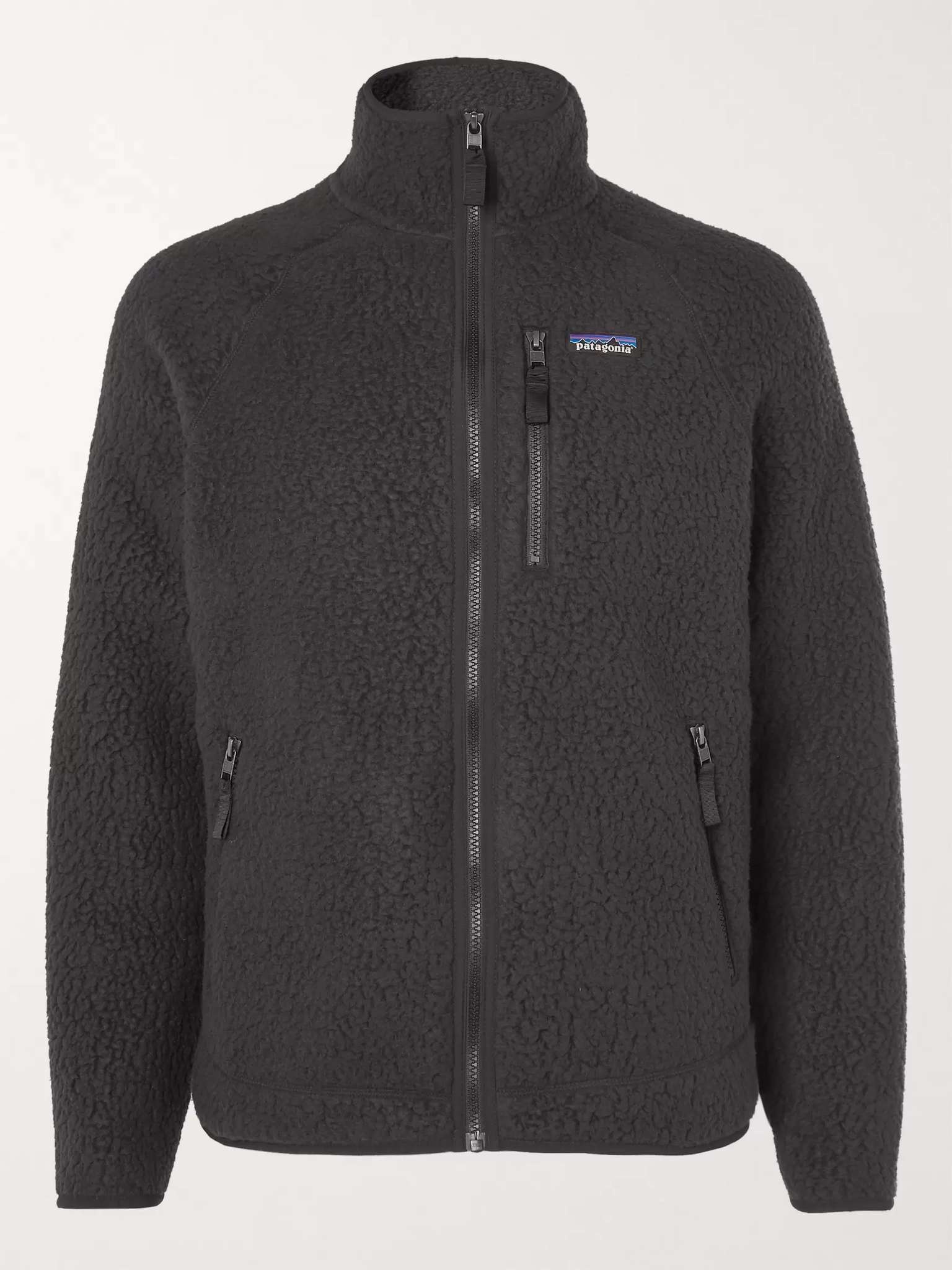 - Black fleece - Funnel neck, appliquéd designer emblem, front zipped pockets, partially lined - Zip fastening - 100% recycled polyester - Machine wash