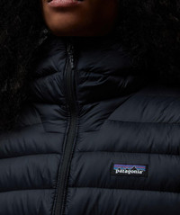 Patagonia combines lightweight materials with all-terrain protective sensibilities, Introducing the Hooded down jacket, made with recycled materials and high-quality down, look to this latest iteration for ultimate comfort no matter the weather. • Regular Fit • Full zip closure • Adjustable hood • Elastic cuffs • Interior pocket converts to stuffSack • Dual front zip pockets • Woven brand label at chest • Shell; 100% PCR Nylon • Inner;100% Responsible down insulation • Item code: 84702 BLK Product Information • 4120521