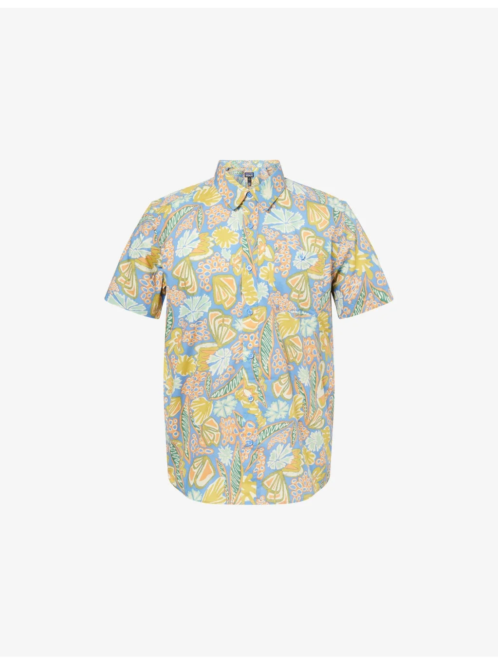 PRODUCT DETAILS - Patagonia cotton-blend shirt - 60% cotton, 40% polyester - Exposed button fastening at front - Spread collar - Closed cuffs - Relaxed fit, collar, short sleeves, buttoned pocket at front, straight yoke and pleat at back, brand tab at side, all-over floral print, curved hem - Machine wash at 30°C - Size medium: length 28in / 72cm, chest 42in / 107cm - Model is 6ft 2in/1.88m and wears a size medium - Lightweight, stretchy Ref: R04423072