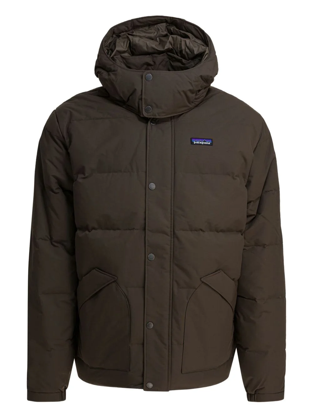hooded puffer jacket Highlights - Brown - Button fastening - Logo patch - Hood - Front pockets - Puffer design Imported Composition Outer: Recycled Polyester 100% Lining: Recycled Down 100% Washing instructions Read Manufacturer Guidelines