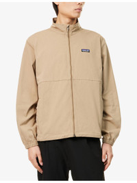 PRODUCT DETAILS - Patagonia woven jacket - 71% cotton, 27% nylon, 2% elastane - Regular fit, high collar, long sleeves, elasticated sleeve cuffs, logo patch at front, two drop-in front pockets, quick drying - Machine wash at 30°C - Size medium: length 27in / 68.5cm, chest 44in / 111.7cm - Model is 6ft 2in/1.88m and wears a size medium - Midweight, non-stretch Ref: R04423063