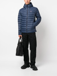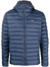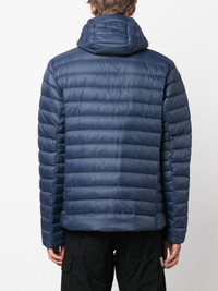 padded hooded jacket Highlights - Teal blue - Recycled nylon/goose down-duck feather blend - Padded design - Classic hood - Logo patch at the chest - Stand-up collar - Front zip fastening - Long sleeves - Straight hem - Two side slit pockets Imported Composition Outer: Recycled Nylon 100% Lining: Recycled Nylon 100%, Goose Down 90%, Duck Feathers 10% SIZE & FIT Model measurements Height 6 ft 1 in(1.85 m) Bust/Chest 35.43 in(90 cm) Hips 35.82 in(91 cm) Waist 27.55 in(70 cm) FittingInformation Designed for a slim fit, offering a comfortable fit that sits just away from the body The internal drawstring at the hem allows for fitted preferences Made from a padded non-stretch fabric, giving it no natural elasticity This piece fits true to size – take your usual size Washing instructions Machine Wash