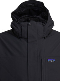 Patagonia's "Tres 3-in-1" parka features a modular construction consisting of a waterproof and windproof outer jacket and a removable padded inner jacket. The outer fabrics and linings are made of 100 percent recycled polyester, while the padding uses 700-fill-power recycled down. The silhouette is straightforward, with full bi-directional zipper, removable hood and high stand-up collar for added protection. - Logo - Long sleeves - Two-layer, micro-weave outer fabric, H2No™ Performance Standard tested - DWR water-repellent treatment with no PFAS added - Adjustable and removable hood with snap - Protective flap with hidden snap closure - Inner jacket with quilted work with horizontal squares - 100% recycled down 700-fill-power inner filling - Front zippered handwarmer pockets with brushed tricot lining - Inside zippered chest pocket - Adjustable hem with hidden drawstrings - Environmentally sustainable product - Regular fit - Colour: Black - Composition: 100% polyester - Padding: down and feathers - Country Of Manufacture: Vietnam - Extra Description: LogoRegular fit;Long sleeves - MPN: 28389BLK