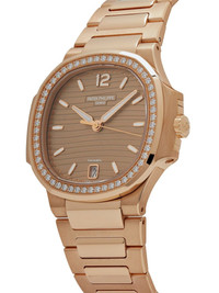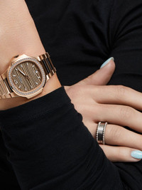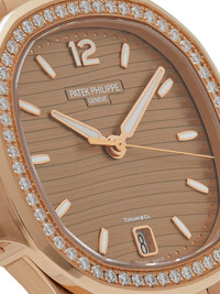 unworn Tiffany & Co 2024 Nautilus 35mm Highlights - 2024 - Unworn - 35mm - 18kt rose gold - Cushion face - Guilloche dial - Geometric dial - Baton hands - Date indication - Automatic movement - Diamond-encrusted bezel - Screw-down crown - Adjustable link bracelet - Folding clasp - Original box included. - Original papers included. - Normal everyday use and external agents may reduce the lustre of gemstones and gold surfaces. to maintain, use specific, non-abrasive products specially meant for cleaning jewellery. - This item comes with a standard one-year warranty from the boutique. - This watch has been evaluated and authenticated by wrist aficionado watchmakers. - Condition: unworn. this item is previously owned but remains unworn and in its original condition. however, it does not come with its original tags. Imported Composition 18kt Rose Gold 100%