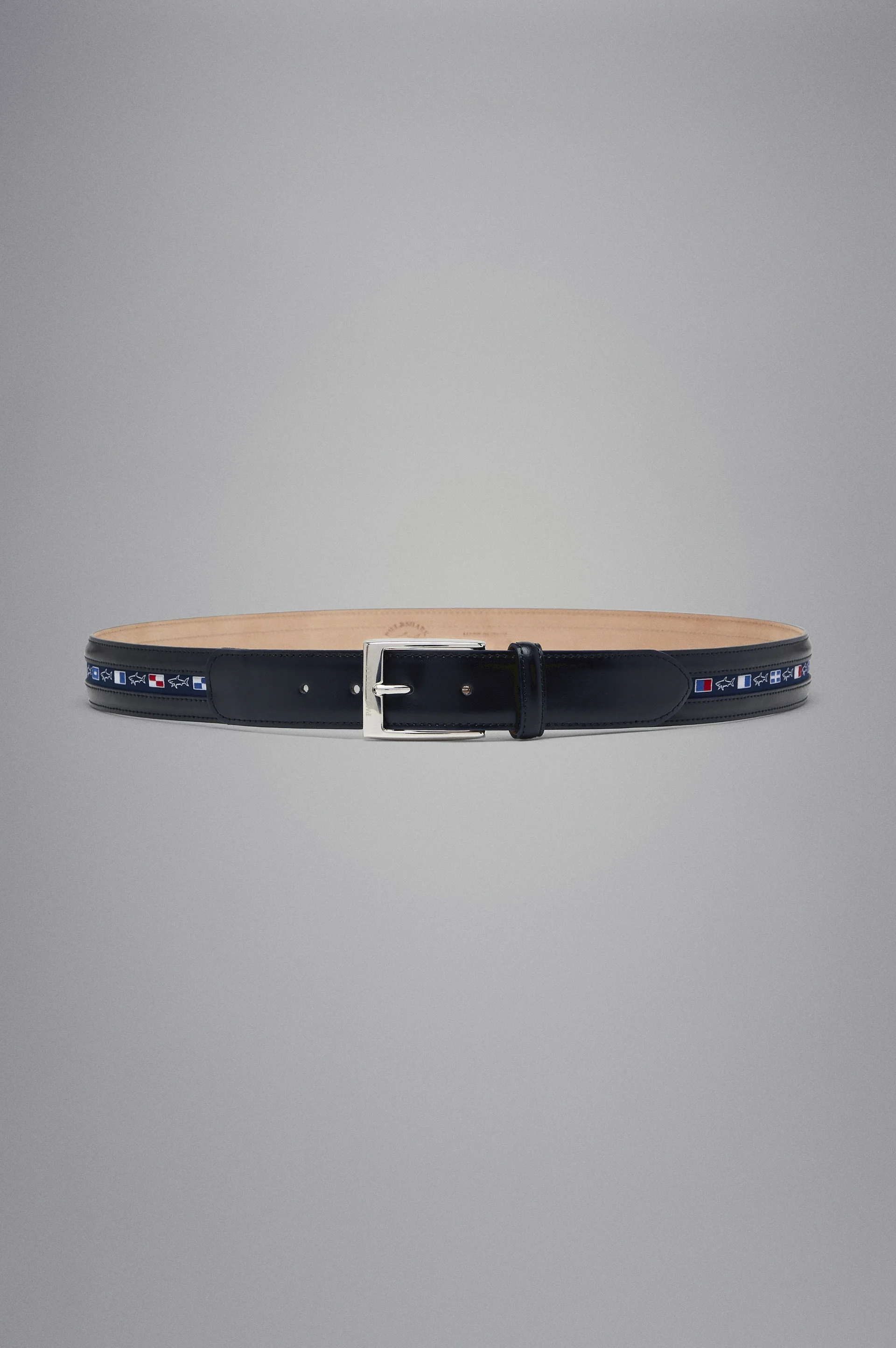 LEATHER BELT WITH NAUTICAL FLAGS RIBBON