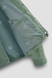 DETAILS Metal Shark Fin Satin lining with heraldic emblem Two-way zip and press stud closure Padded overshirt in Aqualeather Regular Fit Product ID: 15312487 COMPOSITION & CARE Composition: Outer: Genuine goat leather - Lining: 51% polyester, 49% acetate - Sleeve lining: 100% polyester - Padding: 100% polyester