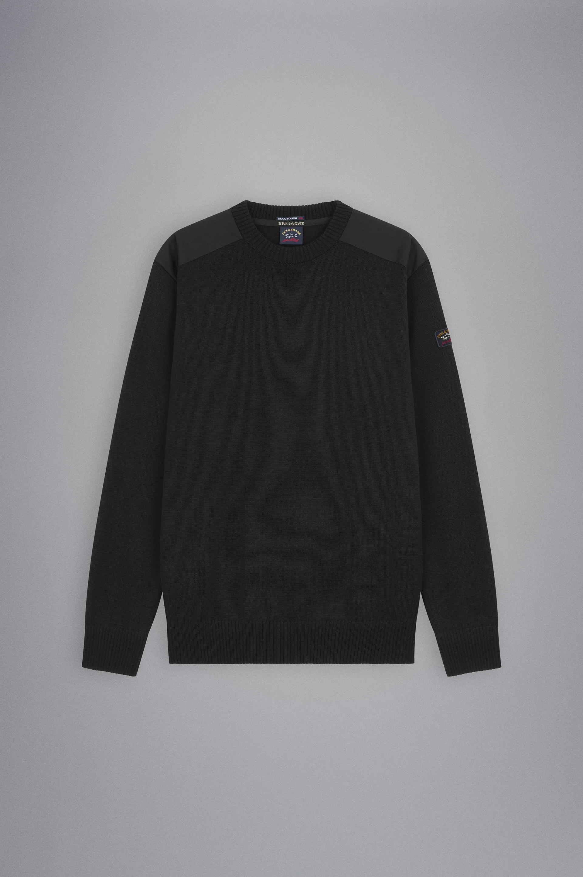 DETAILS Crewneck Technical fabric inserts Bretagne wool crew neck with iconic badge Long sleeves Regular fit Product ID: C0P1030 COMPOSITION & CARE Composition: 100% Wool