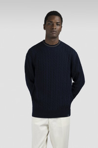 The pieces from the Riviera collection embrace those peaceful moments by the sea in winter when the waves gently crash against the shore, and the fresh air invites you to seek refuge in a minimal-chic style. Paul & Shark reworks a men's wardrobe classic with sophisticated heritage details. This crew-neck jumper is knitted from a fine cotton-cashmere blend with an elegant cable-knit weave reminiscent of quintessential sailing styles. Ribbed trims with contrast edging ensure a well-defined silhouette, whilst our iconic shark label signs off the look with a signature touch. DETAILS Shark label Wool and cashmere turtleneck sweater, gauge 7 Ribbed collar, cuffs and flounce Cable knitwear Long sleeve Regular Fit Product ID: 15311033 COMPOSITION & CARE Composition: Outer: 90% Virgin Wool 10% cashmere