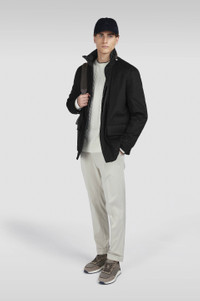 Luxurious materials, refined silhouettes and meticulous attention to detail: the ultimate embodiment of Paul & Shark's effortless elegance. A smart essential that’s built to last, this business-approved car coat combines highly resistant materials with sartorial-inspired details. This style is crafted from cashmere produced in Italy with Loro Piana's Green Storm System®: a Loro Piana registered trademark that makes the fabric waterproof and wind-resistant, without altering the softness or comfort of the natural fibre. Its cosy silhouette is also easily customised, featuring a packable hood, inner drawstring at the waist and two-way zip closure. Luxurious satin with a Paul & Shark heraldic crest lines the inside, while various pockets provide ample space to store your valuables. DETAILS Metal Shark Fin Technical fabric lining with heraldic pattern Detachable hood with zip Two-way zip and press stud closure Adjustable cuffs with branded snap button Car coat in cashmere with Green Storm System® – Made in Italy by Loro Piana® Internal drawstring Applied external pockets with snap buttons and external pocket with zip Multifunction internal pockets Regular Fit Product ID: 15312421 COMPOSITION & CARE Composition: Outer: 100% cashmere - Lining: 51% polyester, 49% acetate - Sleeve lining: 55% polyester, 45% viscose - Padding: 100% polyester