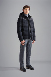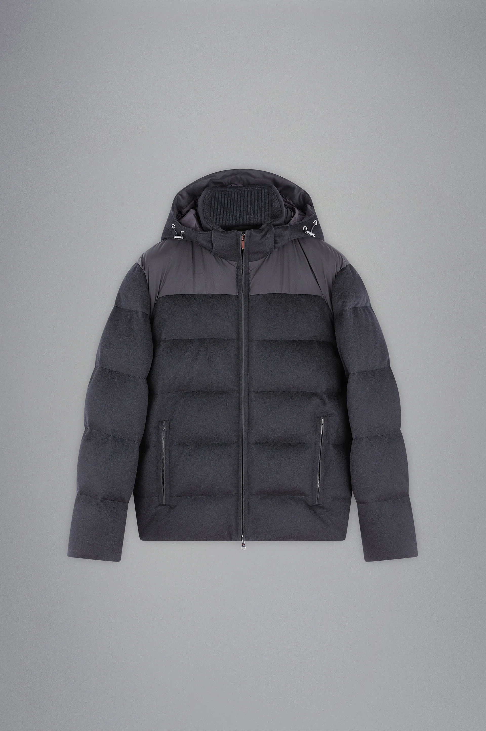DETAILS Shark fin Detachable and adjustable hood Two-way zip closure Re-Goose Down filling Loropiana® Storm System Cashmere Down Jacket Made in Italy by Loro Piana Ribbed collar for better comfort Zipped pockets Inside phone pocket with zip Channel quilting Product ID: 14312407 COMPOSITION & CARE Composition: Outer: 100% Cashmere - Lining: 100% Nylon - Interlining: 100% Polyester - Padding: 70% Down 30% Feather - Inserts: 100% Polyester - Contains non-textile parts of animal origin - Natural down washed sterilised D.P.R. N.845 D