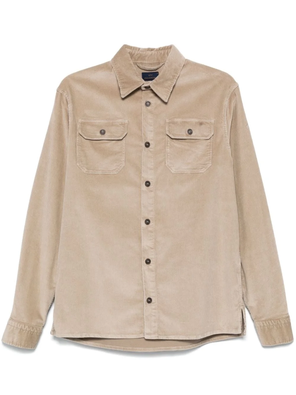 corduroy shirt Highlights - Beige - Cotton blend - Corduroy - Front button fastening - Classic collar - Logo patch at the sleeve - Long sleeves - Buttoned cuffs - Two button-fastening chest pockets - Short side slits - Straight hem Imported Composition Cotton 74%, Modal 24%, Elastane 2%