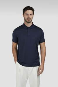Sophisticated, versatile and luxuriously soft: this polo shirt is a versatile menswear staple, made from cotton-silk in an ultra-breathable stocking-stitch weave. Striped detailing on the cuffs adds a dynamic touch, whilst side slits ensure the fit sits elegantly without restriction. DETAILS Shark tag Button closure Cotton and silk polo Ribbed collar and cuffs Stocking stitch Short sleeve Regular Fit Product ID: 25411208 COMPOSITION & CARE Composition: Outside: 38% cotton 62% silk