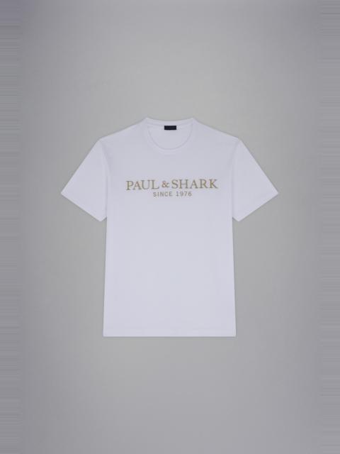 DETAILS Cotton jersey T-shirt Two-tone logo print Jersey knit Paul & Shark embroidery Short sleeve Regular Fit Product ID: 24411031 COMPOSITION & CARE Composition: Outside: 100% Cotton