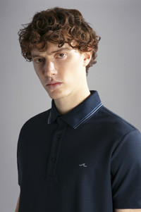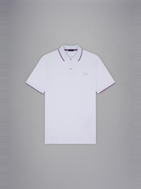 COTTON PIQUE POLO SHIRT WITH STRIPED DETAILING ON THE COLLAR