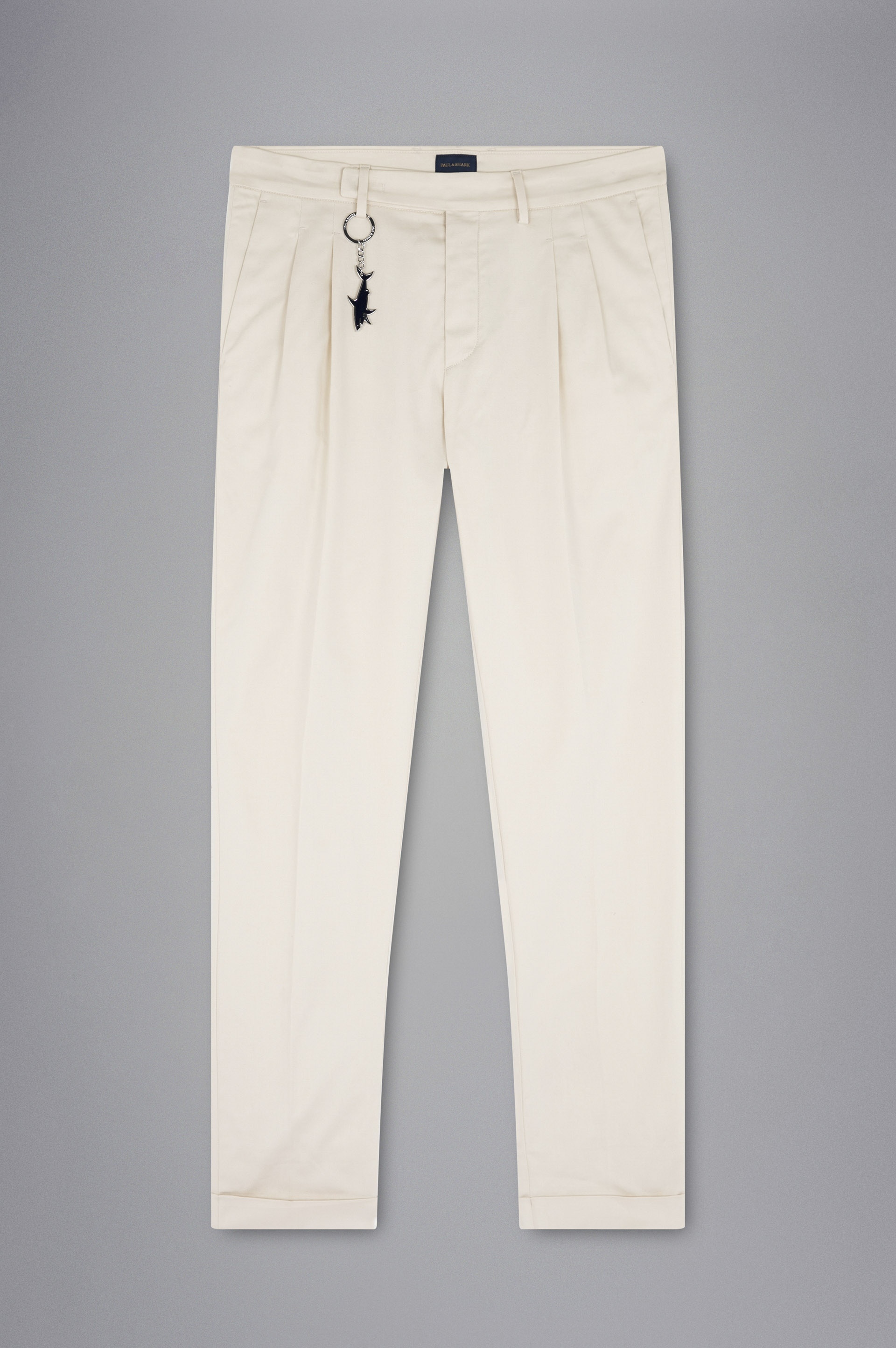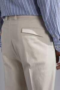 DETAILS Zip and button closure Stretch cotton trousers Welt pockets Regular Fit Product ID: 24414086 COMPOSITION & CARE Composition: Outside: 99% Cotton 1% Elastane- Pocket lining: 65% Polyester 35% Cotton