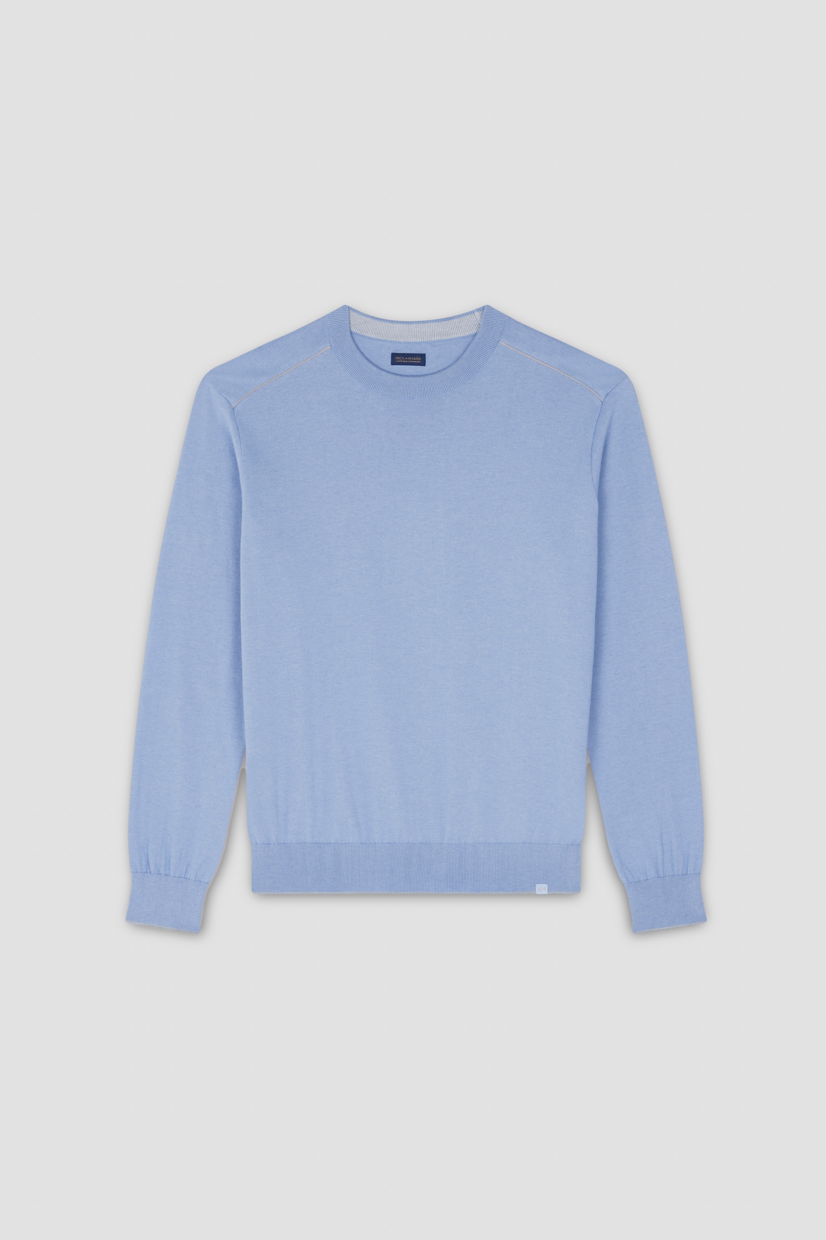 CREW NECK SWEATER IN COTTON AND CASHMERE WITH LEATHER TRIMS