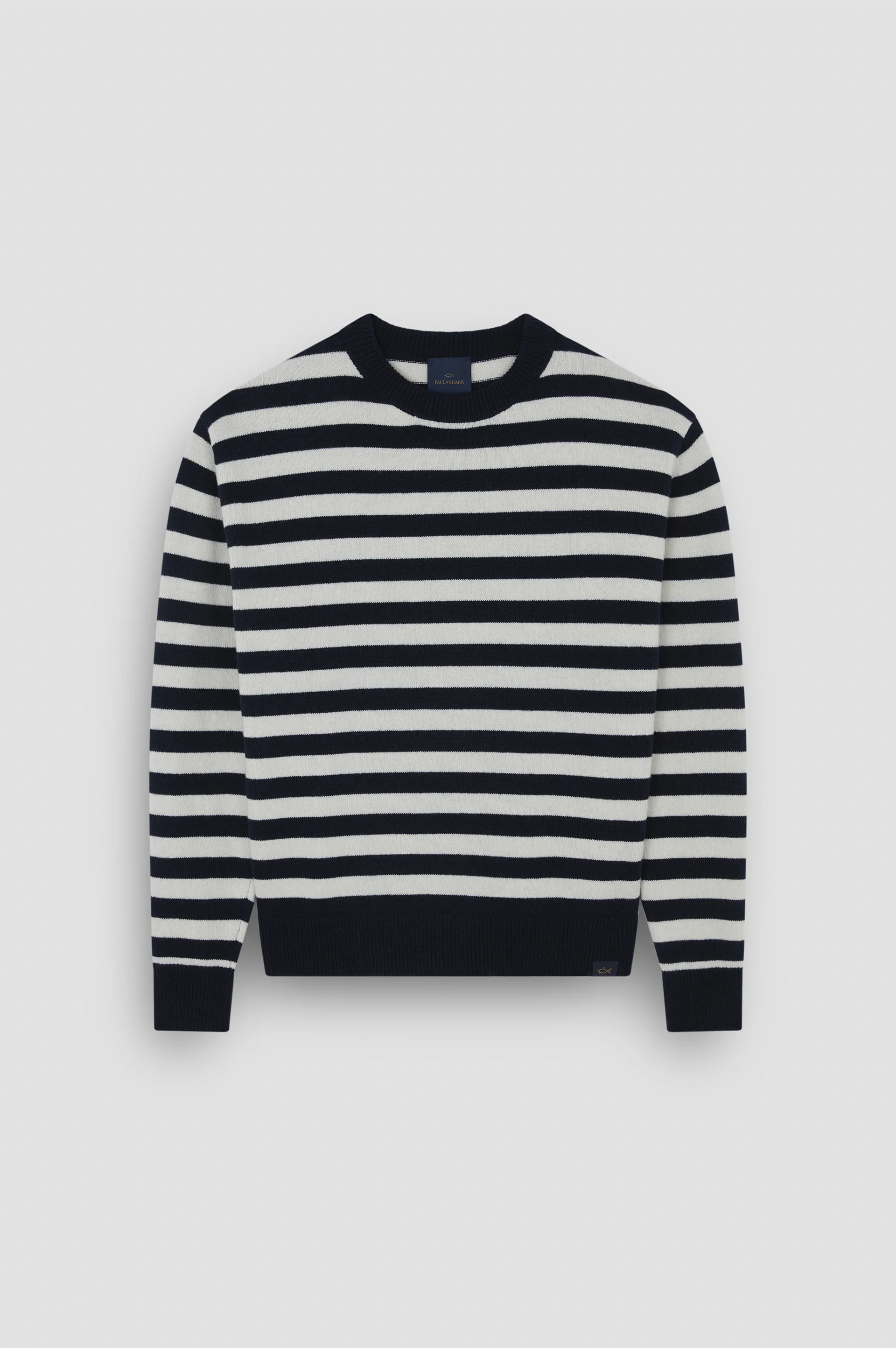 RE-CODED translates the charm of Paul & Shark’s historic archive into a range of timeless, sophisticated looks. Iconic details, super-soft yarn and modern proportions: this crew-neck jumper brings statement Paul & Shark style to your everyday wardrobe. This garment is knitted from Re-Wool: a blend of luxuriously cosy regenerated wool, cementing Paul & Shark’s commitment to circular consumption. Distinguished by a striped intarsia design in the brand’s signature colours, it’s edged with snug ribbed trims for a well-defined silhouette. DETAILS Shark label Re-Wool crew neck sweater, gauge 7 Ribbed collar, cuffs and flounce Stocking stitch Long sleeve Regular Fit Product ID: 15311084 COMPOSITION & CARE Composition: Outer: 80% Wool 20% nylon