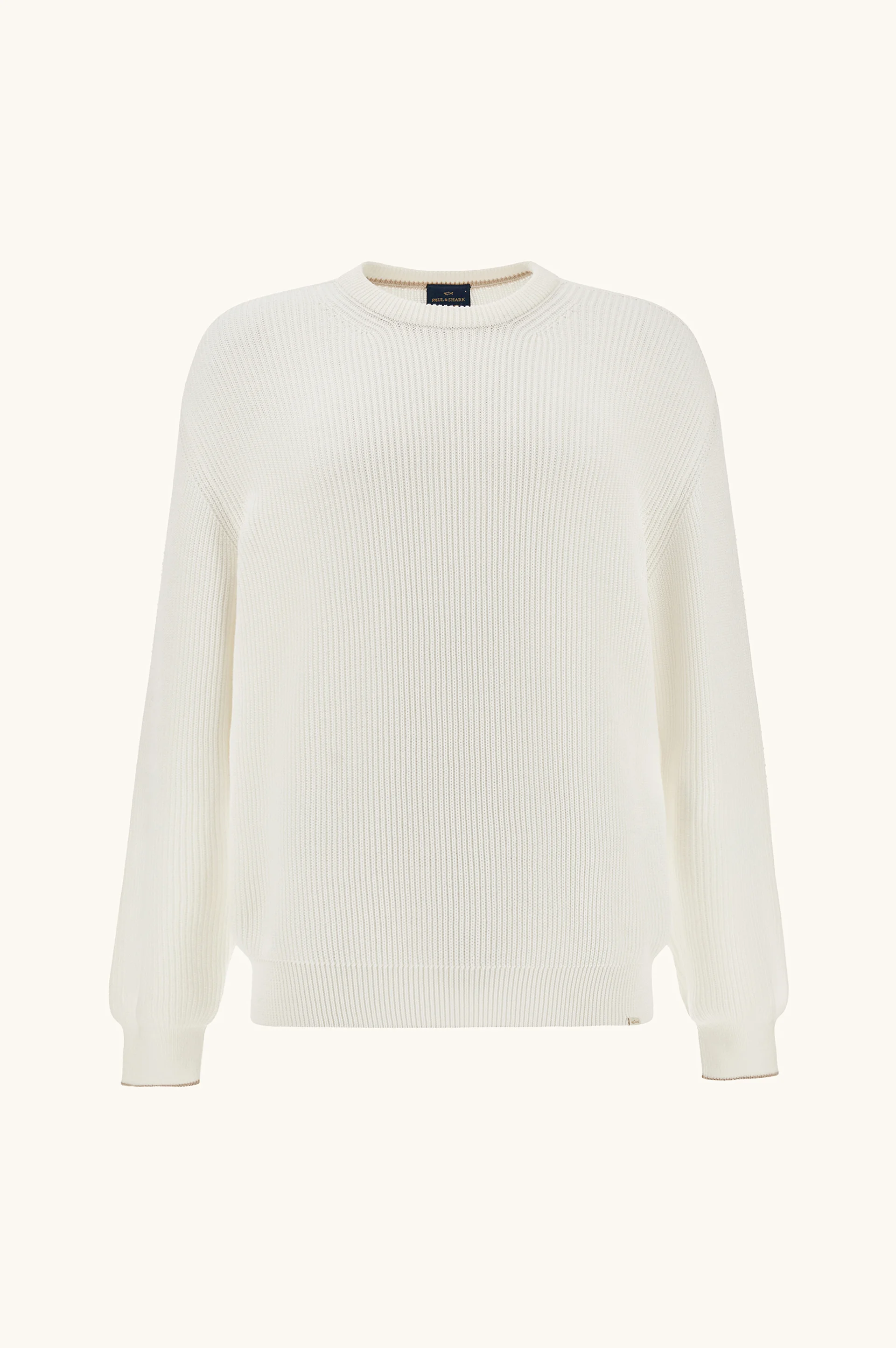 Made from precious Giza cotton with extra-long fibers, Piuma yarn offers a naturally soft and breathable touch. Thanks to a special technology — usually applied to wool — the cotton becomes exceptionally lightweight, delivering a sensation of pure delicacy. A piece that embodies the delicacy and lightness of the finest cotton. The Piuma yarn, crafted with innovative technology, delivers a silky, exceptionally soft feel, making the knit comfortable and breathable. The English rib construction adds structure and refinement to the design, while the fit strikes a balance between clean lines and freedom of movement. An essential, versatile knit designed to elevate everyday moments and enrich the wardrobe with a touch of discreet luxury. DETAILS Shark label Crew‑neck sweater in Piuma cotton gauge 7 ultra‑light with silk effect Ribbed collar and hem, cuffs with contrasting stripe detail English rib knit Long sleeve Regular Fit The model is 188 cm tall and wears size L Product ID: 26411529 COMPOSITION & CARE Composition: 100% cotton