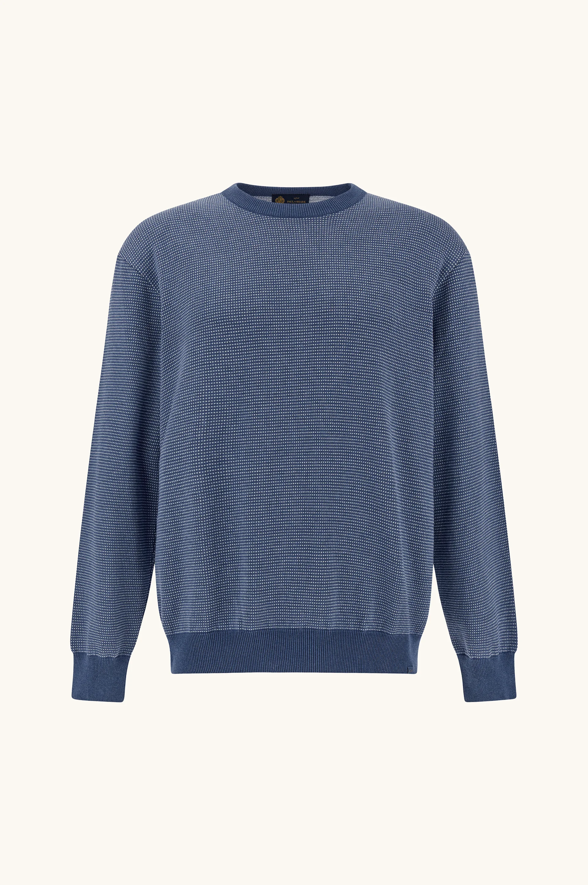 Paul & Shark reworks leisure style with a functional, innovative twist. This crew neck knit is crafted from a silk and cotton blend, worked in jacquard knit with a micro bicolour pattern. The elbows feature Aqualeather suede inserts, a special treated suede designed to resist water and dust. Ribbed collar, cuffs and hem define the design, enhanced by the iconic Shark Fin embroidery on the back. DETAILS Shark label Bicolour micro pattern Crew‑neck sweater in silk‑cotton blend gauge 12 Ribbed cuffs, hem and collar in solid color Aqualeather suede elbow patch Back Shark Fin embroidery Jacquard knit Long sleeve Regular Fit The model is 189 cm tall and wears size L Product ID: 26411525 COMPOSITION & CARE Composition: 55% silk 45% cotton - Contains non-textile parts of animal origin