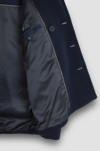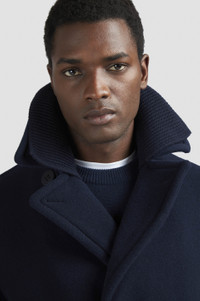 Paul & Shark draws inspiration from the past to create timeless collections that always feel new. Over the years, some pieces have become true icons, instantly recognizable in both design and style. Inspired by classic sailing apparel, but updated with sartorial finesse, this Paul & Shark pea coat is a timeless classic for every occasion. Its iconic silhouette features oversized lapels, a double-breasted closure with logo buttons and handy welt pockets on the sides. Crafted from luxuriously soft wool and cashmere, it features a detachable knitted collar and a satin lining with signature Paul & Shark logo, reinterpreted as a heraldic crest. DETAILS Metal Shark Fin Double-breasted closure with logo buttons Peacoat in wool and cashmere Welt pockets with zip Internal pockets Satin lining with heraldic emblem Regular Fit Product ID: 15312361 COMPOSITION & CARE Composition: Outer: 62% wool, 28% nylon, 10% cashmere - Lining: 55% polyester, 45% viscose