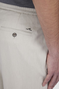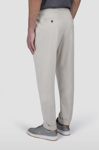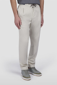 The perfect balance of functional attitude and aesthetic flair. These trousers with elasticated drawstring waist are made from Dynamic Wool: an elegant stretch wool fabric that gracefully flexes to your every movement while delivering a flawless fit. Their clean design with straight leg that tapers in lightly towards the ankle makes them a versatile choice for endless occasions, whilst pockets on the sides and back are perfect for keeping small essentials to hand. DETAILS Metal Shark Fin Zip and button closure Dynamic Wool chino pants with single pleat Buttoned pockets Regular Fit Product ID: 15314093 COMPOSITION & CARE Composition: Exterior: 40% cotton 40% lyocell 17% virgin wool 3% elastane - Pocket lining: 100% polyester