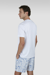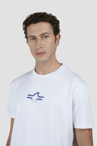 Supima® cotton is an extra-long, fine fibre that offers superior performance in terms of strength, softness and resistance to pilling. Relaxed and refined in equal parts, this crew-neck T-shirt is knitted from pure Supima® cotton: an extra-long, fine fibre that offers superior performance in terms of strength, softness and resistance to pilling. Its short-sleeved regular-cut silhouette ensures a flattering fit without restriction, embroidered with our signature Fin in the colours of the ocean for an iconic Paul & Shark touch. DETAILS Supima® cotton jersey T-shirt Digital print Jersey knit Short sleeve Regular Fit Product ID: 25411084 COMPOSITION & CARE Composition: Outside: 100% Cotton