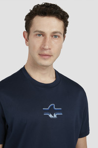 Supima® cotton is an extra-long, fine fibre that offers superior performance in terms of strength, softness and resistance to pilling. Relaxed and refined in equal parts, this crew-neck T-shirt is knitted from pure Supima® cotton: an extra-long, fine fibre that offers superior performance in terms of strength, softness and resistance to pilling. Its short-sleeved regular-cut silhouette ensures a flattering fit without restriction, embroidered with our signature Fin in the colours of the ocean for an iconic Paul & Shark touch. DETAILS Supima® cotton jersey T-shirt Digital print Jersey knit Short sleeve Regular Fit Product ID: 25411084 COMPOSITION & CARE Composition: Outside: 100% Cotton