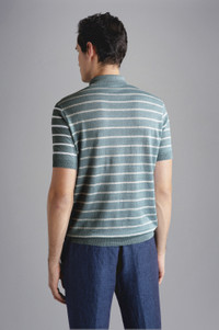 FADED LINEN POLO SHIRT WITH STRIPED PATTERN
