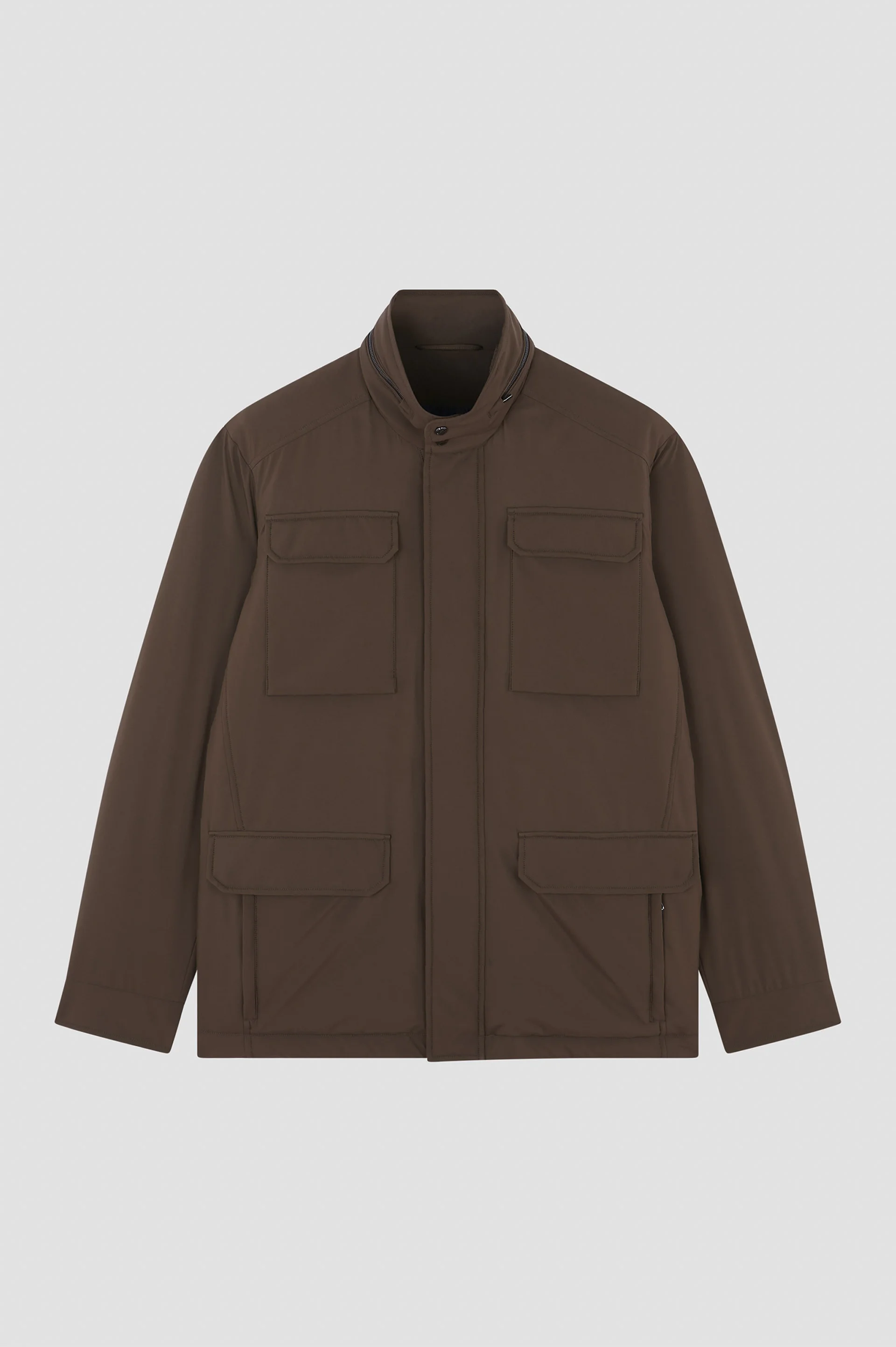 Reserved for our most refined pieces, Typhoon Platinum combines watertightness, breathability and wind resistance with an ultra-luxurious texture. This field jacket is made from Typhoon Platinum, a high-performance fabric with a luxuriously tactile feel, and lined in super-soft jersey. Designed with functionality, practicality and versatility in mind, it features a high neck with packable hood, various utility pockets to keep your essentials organised, and an inner drawstring at the waist for a fully customisable fit. The inside smartphone pocket is isolated with E.M.W. protection technology to provide a shield against harmful electromagnetic waves. Complete with a handing hanging loop on the back of the collar, inspired by classic sailing styles. DETAILS Metal Shark Fin Detachable hood Two-way zip and press stud closure Adjustable cuffs with snap buttons Field jacket Typhoon® Platinum Funnel neck Multiple external pockets with flap Internal phone pocket E.M.W Regular Fit Product ID: 15312602 COMPOSITION & CARE Composition: Exterior: 100% polyester - Lining: 100% cotton - Sleeve lining: 100% polyester - Padding: 100% polyester
