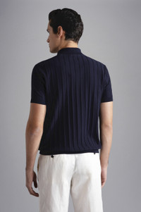 DETAILS Shark label Button closure Fresco cotton jersey, gauge 18 Ribbed collar, cuffs and flounce Stripe embossing Short sleeve Regular Fit Product ID: 24411601 COMPOSITION & CARE Composition: Outside: 100% Cotton