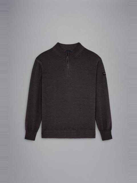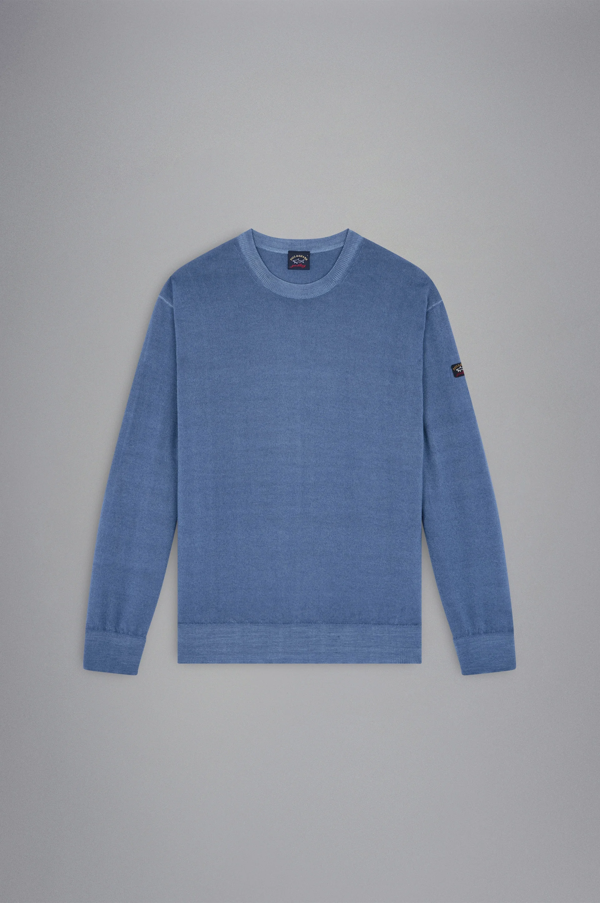 DETAILS Moon badge Garment dyed Crewneck Sweater in gauge 12 wool Ribbed collar, cuffs and flounce Jersey knit Product ID: 11311001 COMPOSITION & CARE Composition: 100% Virgin Wool