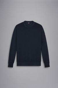 DETAILS Moon badge Garment dyed Crewneck Sweater in gauge 12 wool Ribbed collar, cuffs and flounce Jersey knit Product ID: 11311001 COMPOSITION & CARE Composition: 100% Virgin Wool