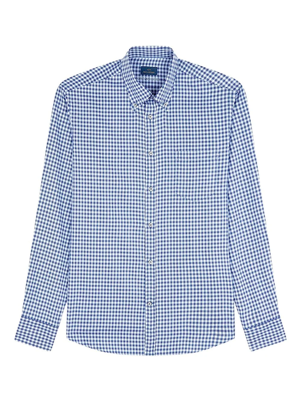 gingham cotton shirt Highlights - Blue - Gingham check pattern - Button fastening - Long sleeves - Chest pocket - Point collar Imported Composition Cotton 100% Washing instructions Read Manufacturer Guidelines