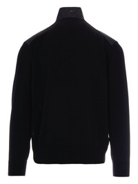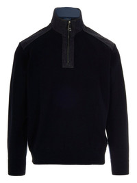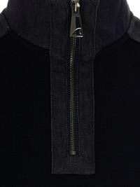 half-zip denim-panel sweater Highlights - Navy blue - Half front-zip fastening - Denim panels - Ribbed hem - Long sleeves - High neck Imported Composition Virgin Wool 100% Washing instructions Read Manufacturer Guidelines