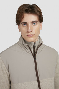 Typhoon Re-4X4 Stretch offers optimal resistance against water and wind, as well as four-way flexibility to naturally mould to your every movement. The ultimate city essential, this jacket combines classic elegance with modern functionality. Its wool-cashmere knitted construction is enriched with the properties of Typhoon Re-4X4 Stretch: a high-performance fabric patented by Paul & Shark, engineered to flex in four directions so it naturally moulds to your every movement. Part of the Save the Sea project, it’s filled with lightweight yet highly insulating Primaloft: a special padding produced from recycled microfibre that cements Paul & Shark’s commitment to protecting the planet. A two-way zip closure ensures maximum practicality, while a satin lining with Paul & Shark heraldic crest completes the look with an elevated touch. DETAILS Shark fin Two-way zip closure Hybrid jacket in wool and cashmere fineness 8 with suede and Typhoon® Re-4x4 stretch details Ribbed collar, cuffs and flounce Side pockets Stocking stitch Long sleeve Regular Fit Product ID: 15311286 COMPOSITION & CARE Composition: Outer: 25% cashmere, 45% virgin wool, 30% viscose - Inserts: Genuine goat leather - Fabric inserts: 88% polyester, 12% elastane