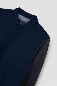 Dedicated to the daring, Typhoon Silk is a luxurious high-performance silk designed to take on every adventure with elegance and style. This shacket is a seamless fusion of elegance and resistance. Designed to add a refined touch to transitional looks, it’s crafted from a fine blend of wool and silk. The shirt collar and rhombus-quilted front stand out in Typhoon Silk: a premium fibre with a special coating that makes the surface both waterproof and windproof. Its elegant silhouette is filled with lightweight yet highly insulating Primaloft padding produced from recycled microfibre, lined in melange jersey for a soft feel against the skin. DETAILS Shark fin Two-way zip closure Diamond quilting Hybrid shacket zip-up in wool and silk, 5-gauge, and Typhoon® Silk Ribbed flounce and cuffs Maxi pockets with flap Stocking stitch Long sleeve Regular Fit Product ID: 15311219 COMPOSITION & CARE Composition: Outer: 70% virgin wool, 30% silk - Front panel: 100% silk - Coating: Polyurethane - Padding: 100% polyester - Inserts: Genuine goat leather - Lining: 100% cotton - Contains non-textile parts of animal origin