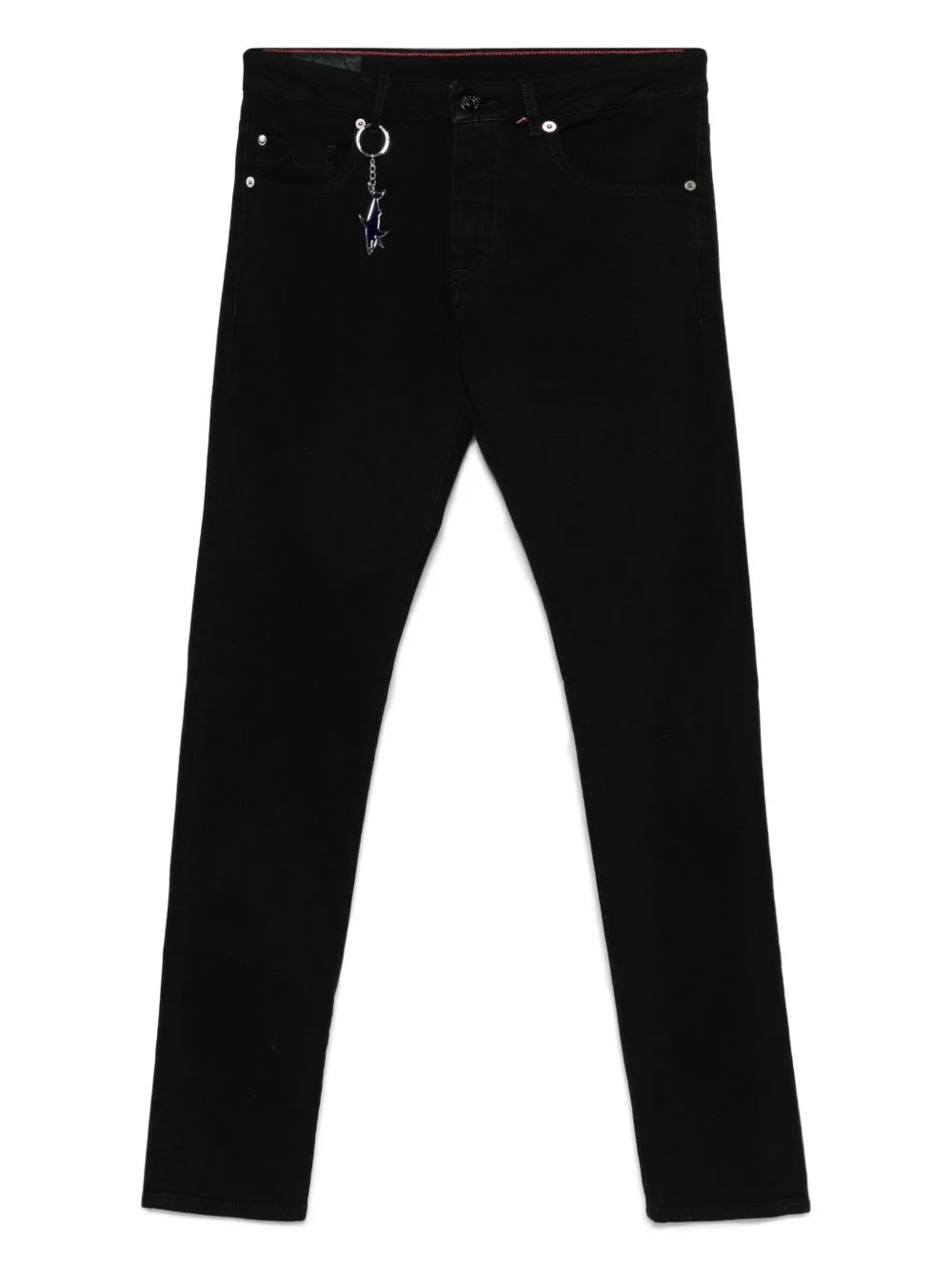 key-chain detail trousers Highlights - Black - Five-pocket styling - Zip fly - Button fastening - Key-chain embellishment Made in Italy Composition Cotton 92%, Elastomultiester 6%, Spandex/Elastane 2% Washing instructions Machine Wash