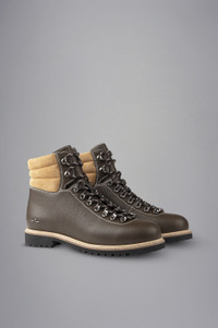 A sporty classic, reinterpreted with luxurious materials and enveloping proportions for maximum comfort from morning to night. This ankle boot fuses functional design with luxurious materials to add an exclusive touch to everyday leisure looks. Crafted from leather, it features a padded collar to support the movement of the foot and a chunky rubber lug sole for maximum grip. Hiking-style cross-over laces and loops complete the look with an edgy touch. DETAILS Lace-up leather ankle Boots Product ID: 14318001 COMPOSITION & CARE Upper: Genuine cow leather - Inserts: Genuine cow leather - Lining: Genuine cow leather - Outsole: 100% Rubber
