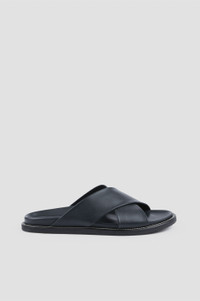 DETAILS Suede slides Hot stamping Product ID: 25418010 COMPOSITION & CARE Composition: Vamp: bovine real leather - Lining: 66% bovine real leather 34% polyester - Outsole: 100% termorubber