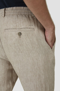 The protagonist of your casual wardrobe but perfect for smarter looks too, a pair of chinos are the epitome of versatile styling. The perfect balance of functional attitude and aesthetic flair. Featuring an elasticated waist with inner drawstring, these chinos are crafted from pure linen that’s been specially treated for an even softer feel. Their clean design with straight leg that tapers in lightly towards the ankle makes them a versatile choice for endless occasions, whilst pockets on the sides and back are perfect for keeping small essentials to hand. DETAILS Zip and button closure Washing with softener Linen chino pants with drawstring Buttoned pockets Regular Fit Product ID: 25414041 COMPOSITION & CARE Composition: Outside: 100% linen