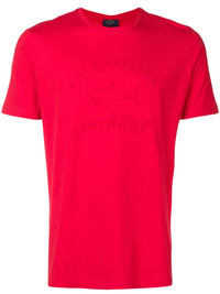logo print T-shirt Red cotton logo print T-shirt from Paul & Shark featuring a round neck, short sleeves, a relaxed fit and a straight hem. Made in Italy Composition Cotton 100% SIZE & FIT Model measurements Height 6 ft 2 in(1.87 m) Bust/Chest 38.18 in(97 cm) Hips 36.61 in(93 cm) Waist 29.13 in(74 cm) Washing instructions Machine Wash