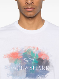 logo-print T-shirt Highlights - White - Watercolour effect - Crew neck - Short sleeves Imported Composition Cotton 100% SIZE & FIT Model measurements Height 6 ft 2 in(1.89 m) Bust/Chest 35.03 in(89 cm) Hips 38.18 in(97 cm) Waist 29.92 in(76 cm) FittingInformation Designed for a regular fit allowing for a comfortably loose fit throughout the body Made from a midweight non-stretch fabric, this piece offers minimal elasticity when worn