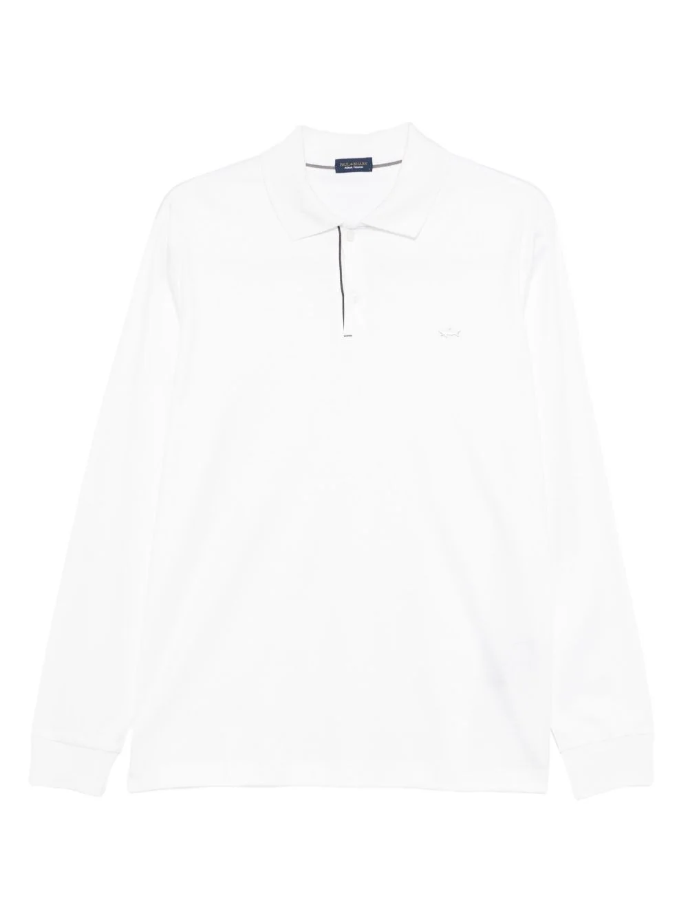 long-sleeve polo shirt Highlights - White - Button placket - Long sleeves - Logo embroidery - Ribbed cuffs Made in Italy Composition Cotton 100% Washing instructions Read Manufacturer Guidelines