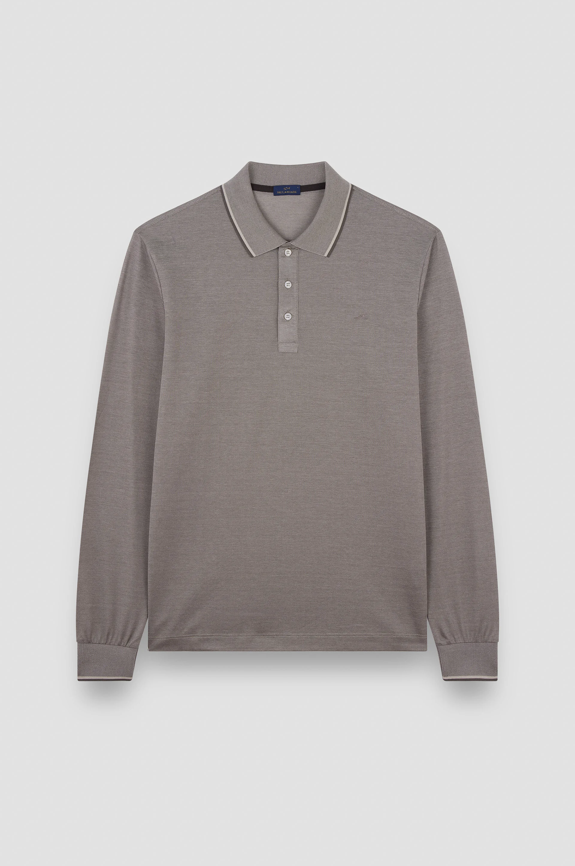 DETAILS Button closure Two-tone pique cotton polo shirt with Shark Fin embroidery Ribbed collar and cuffs Pique knit Long sleeve Regular Fit Product ID: 15311705 COMPOSITION & CARE Composition: Outside: 100% Cotton