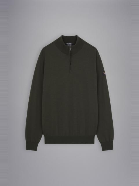 MERINO WOOL HALF ZIP SWEATER WITH ICONIC BADGE